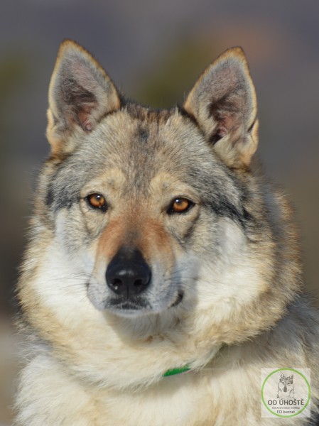 Elenka je další moje velmi hodnotná fena v mém chovu. V posledních pěti generacích vidíme v jejím rodokmenu pouze české a slovenské vlčáky. Její rodokmen je téměř ideálně rozdělený na slovenskou a českou polovinu. Na první pohled zaujme její "dravčí oko", což dává celé hlavě velmi vlčí výraz. Velmi pěkný tvar a uložení oka, zatím i velmi světlé. Má naprosto unikátní velikou širokou klínovitou hlavu. Tu podědila po své matce Jaře III od Úhoště, ta ji má po své matce Xuki II od Úhoště, ta ji má po otci Buckovi II od Úhoště. Tento typ hlavy si ve svém chovu musím podržet. U Elenky se i to daří už čtyři generace. Druhá silná stránka naší Elenky je její povaha. Je to velmi pozitivní fenka, spíše podřízenější k ostatním členkám smečky. Její rodokmen celkově se vyznačuje jen malou příbuzností. Což je vidět na její COI, který je pro 5 posledních generací téměř čistá nula !!! Měla by to být tedy fenka zdravá. Zdraví by měla předávat i jejím potomkům. Je to fenka velmi tvárná a lehce ovladatelná. Trošku měkčí v povaze, ale to je pro život ve smečce fen spíše pozitivní vlastnost.