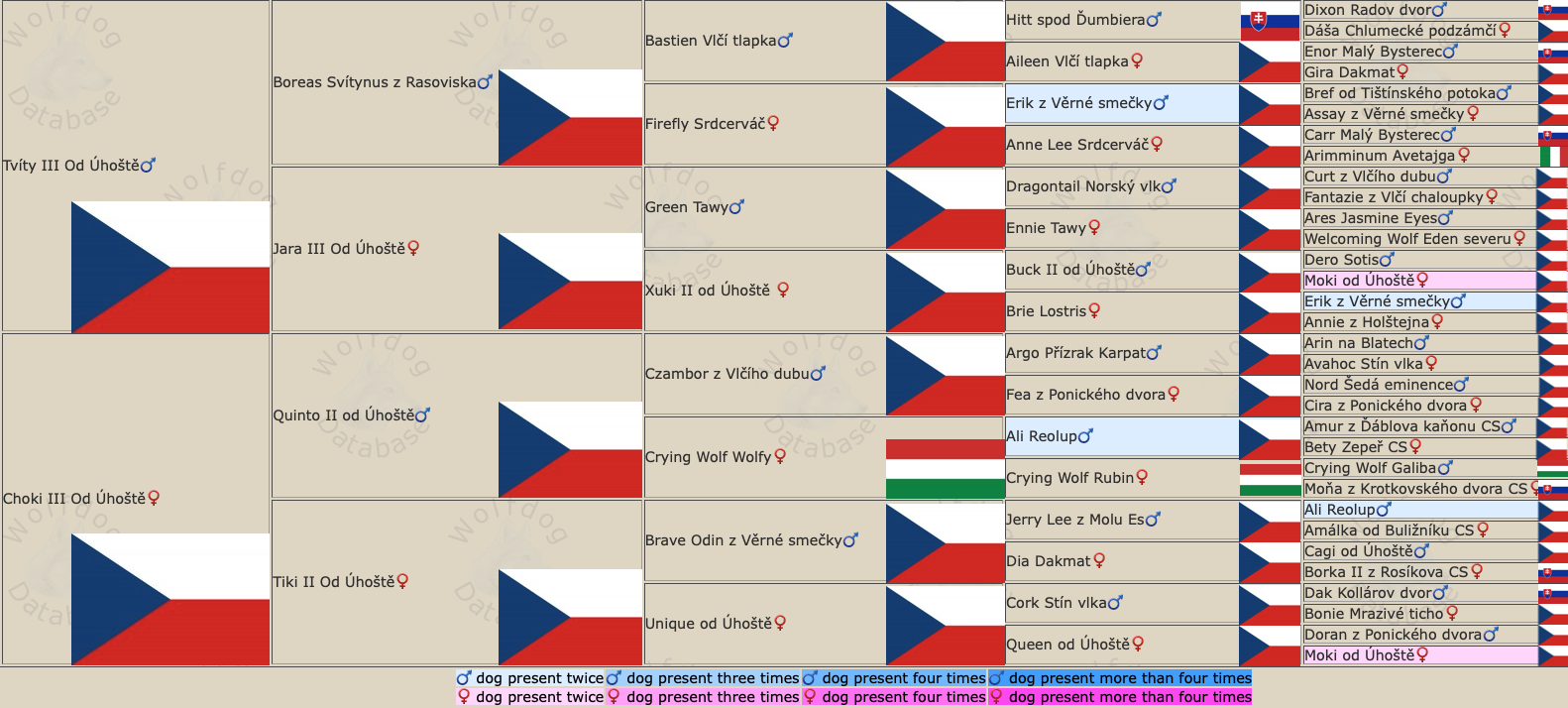 2 antepasado de Italia (pero no de Passo del Lupo, un criadero cuyo propietario fue condenado por un tribunal civil por falsificar pedigríes y este criadero ya no puede criar cachorros. Ninguno de mis cachorros tiene antepasados de este criadero y nunca los tendrá).